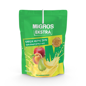 Migros Ekstra %100 Elma Armut Şeftali Muz Karışık Meyve Suyu 200 Ml